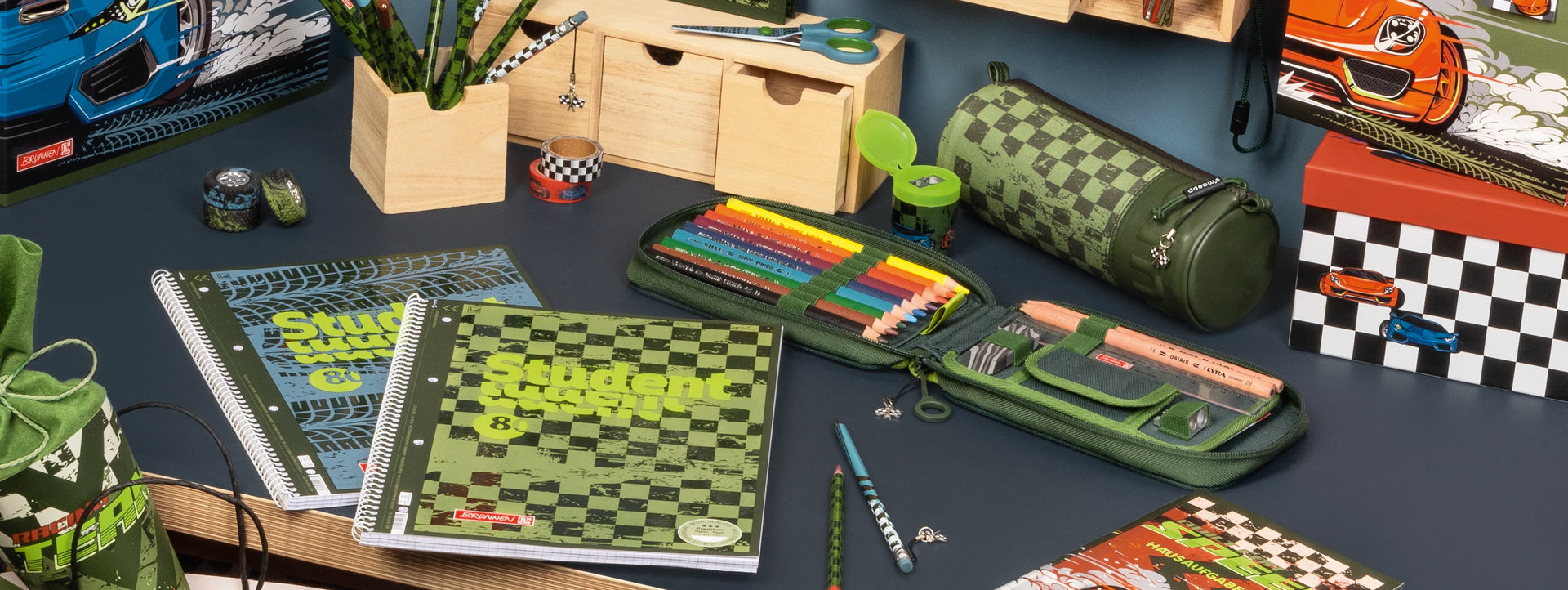 Hausaufgabenheft Fast Wheels | A5, 48 Blatt, grün/mehrfarbig